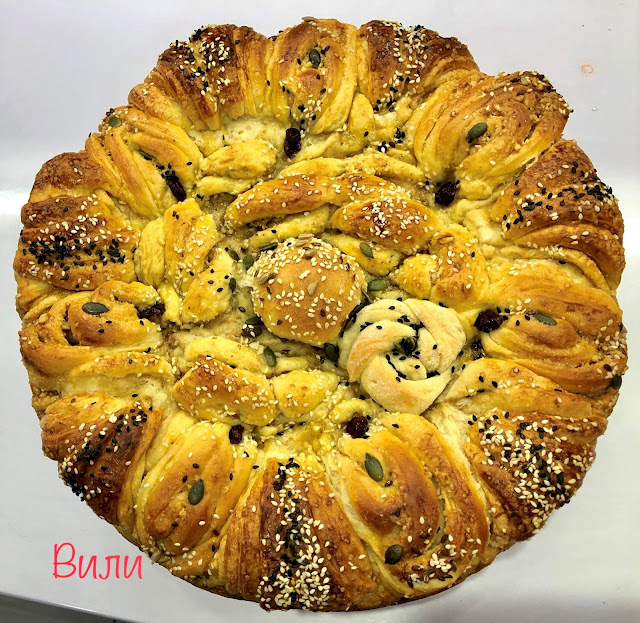 Мажем втасалата питка с жълтъка и поръсваме с останалия ни микс , кафява захар , черен или бял сусам.