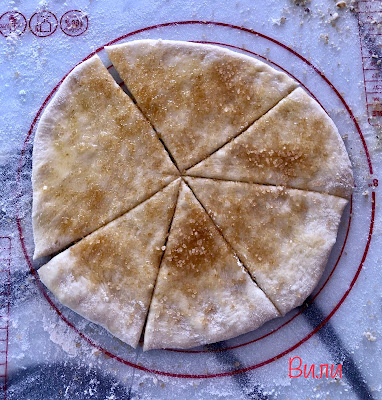 Отново всяка от топките разточваме на кръгла кора с диаметър около 17 – 18 см.