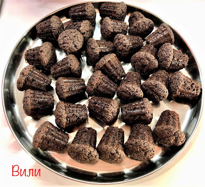 Така много лесно и бързо разпределяме получената смес във формата за мини мъфини.